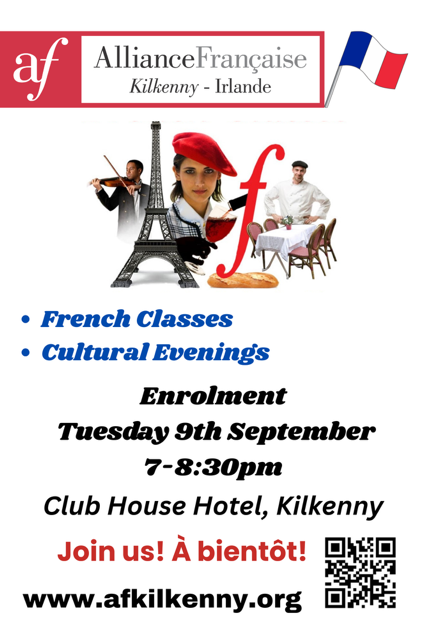 Bienvenue to Alliance Française Kilkenny! UPCOMING NEWS & EVENTS Enrolment Night Coming Soon! Tuesday 9th of September 2025, 7-8:30pm, Club House Hotel, Kilkenny 2025 PAST EVENTS
